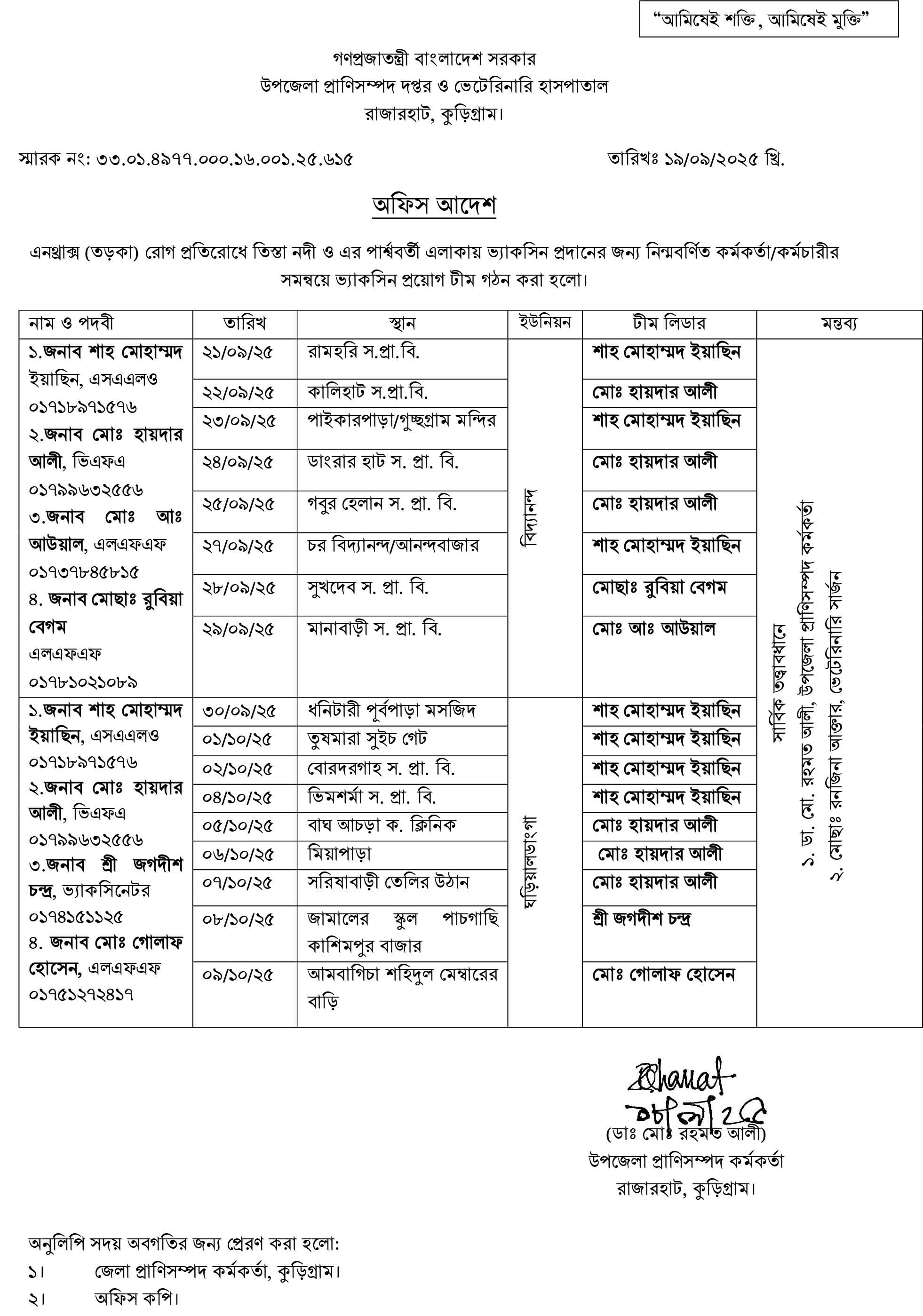 | ৬ | এলএসডি টিকা প্রদান (এলডিডিপি) | | | ১৫-০৯-২০২৫ | দেখুন |